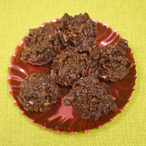チョコレートコーテンングしたフレーク6粒をシルバートレイにラッピング