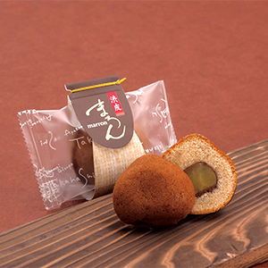マロンペーストと栗あんの入ったマドレーヌに渋皮栗がひと粒のほっこりとした焼き栗のお菓子です。